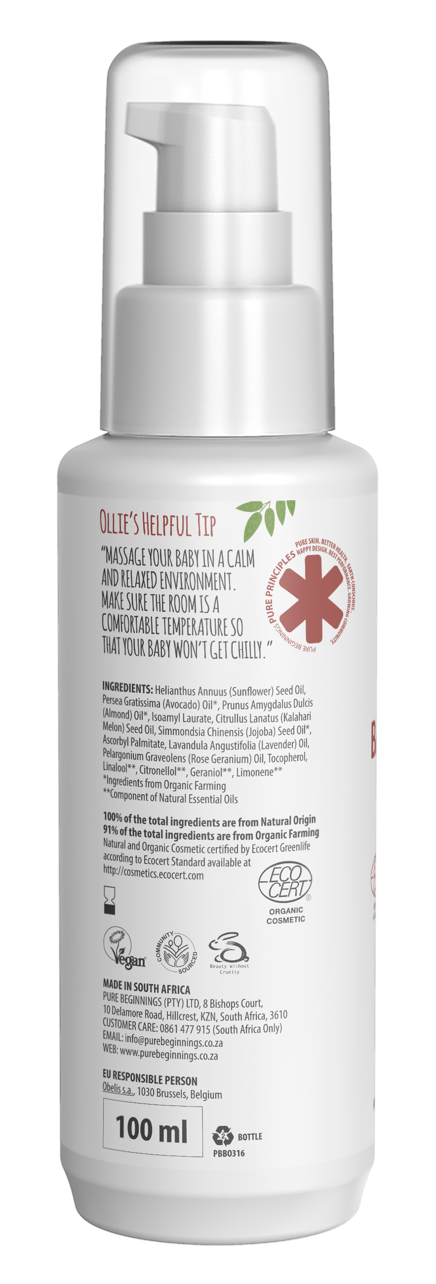 Pure beginnings baby bath & massage oil 100ml